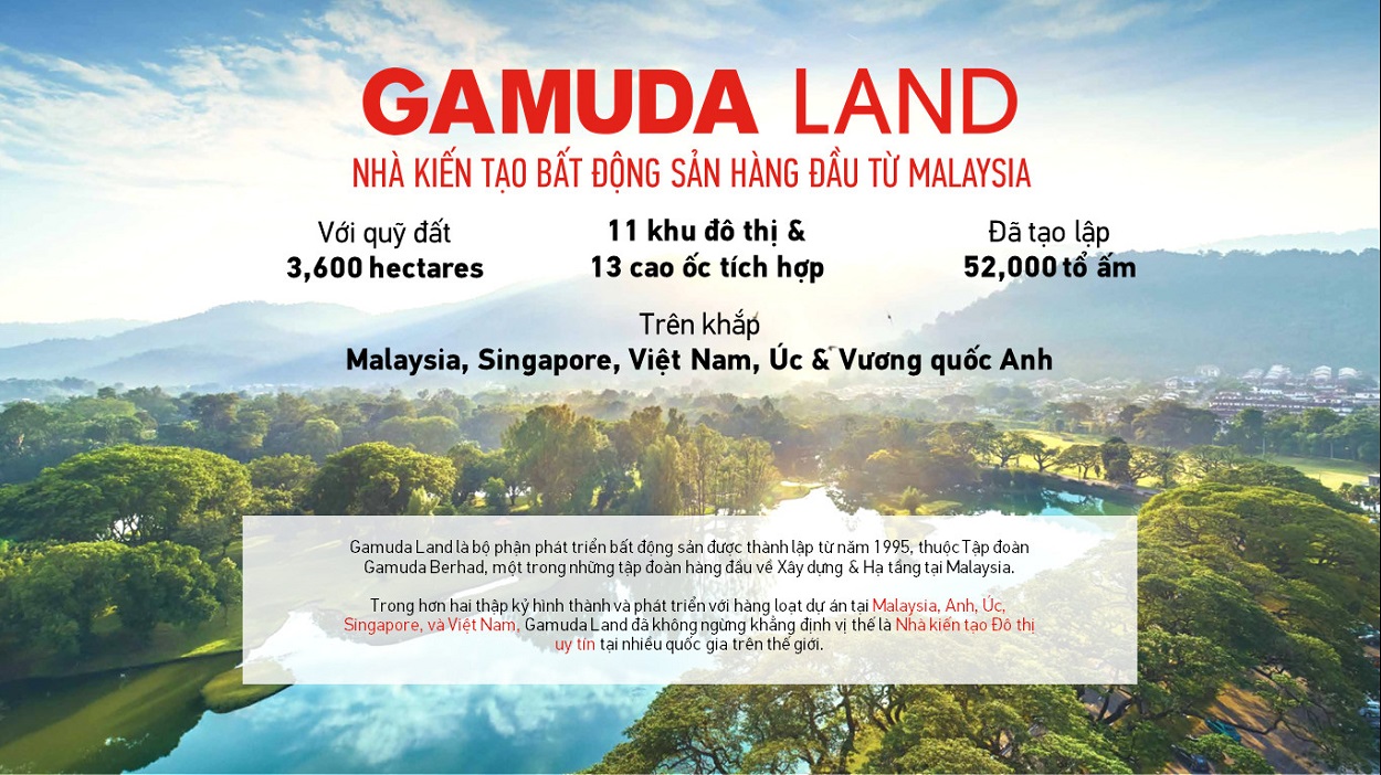 Gamuda Land là một tập đoàn bất động sản uy tín đến từ Malaysia, được thành lập vào năm 1995 và trực thuộc tập đoàn đa quốc gia Gamuda Berhad. Với nhiều kinh nghiệm trong lĩnh vực xây dựng cơ sở hạ tầng, Gamuda Land đã khẳng định vị thế của mình qua việc phát triển các dự án bất động sản cao cấp.